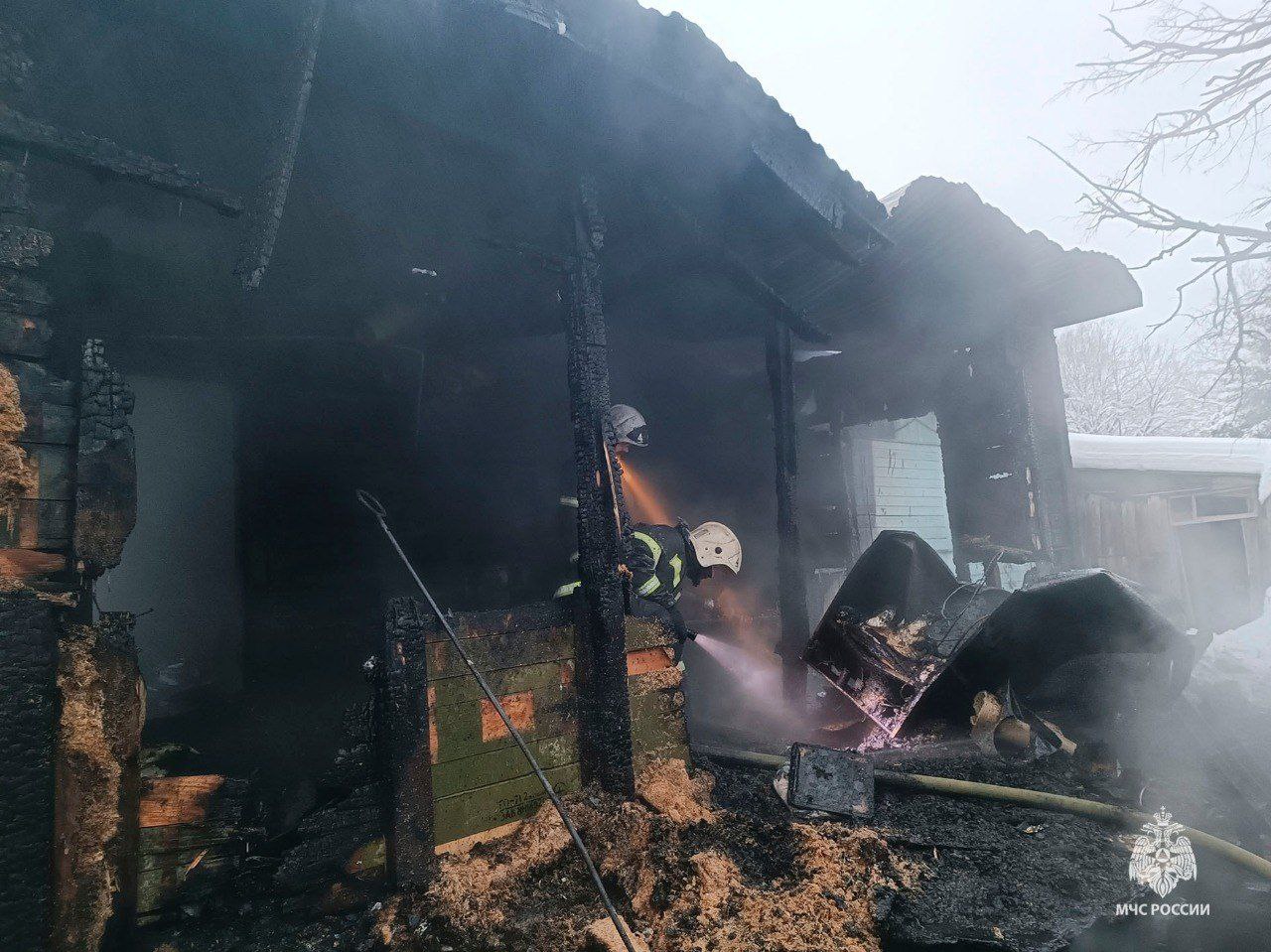 На фото, опубликованных ведомством, видно, что здание после пожара сильно выгорело.