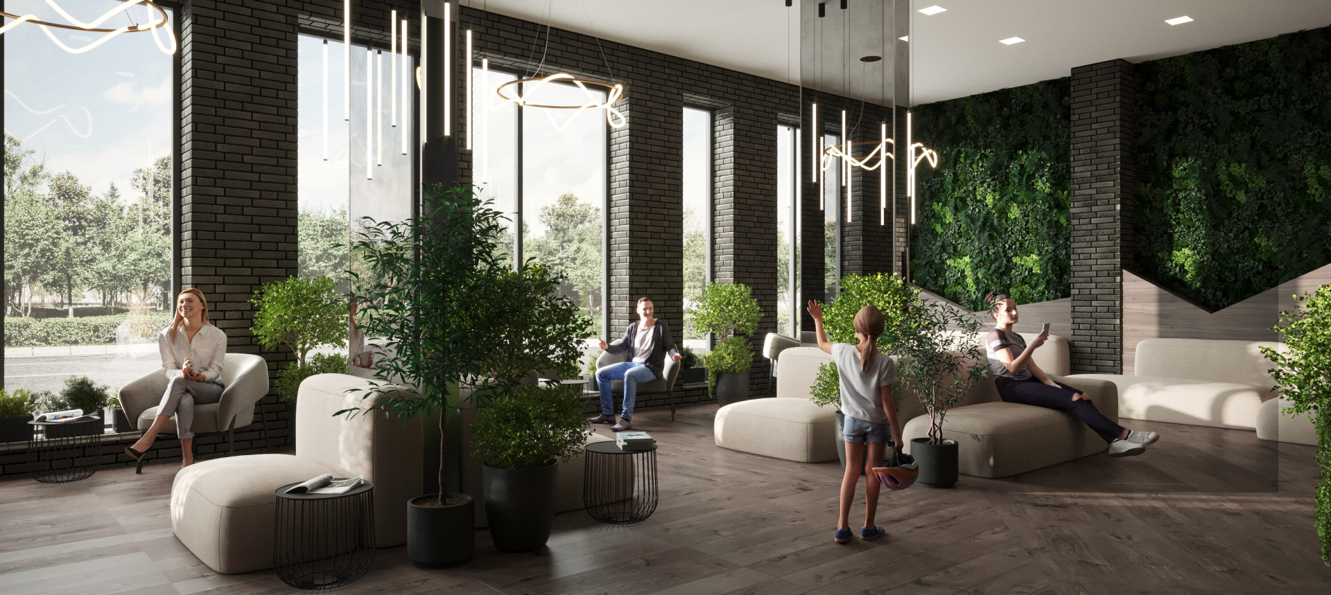 - Комьюнити-центр для жизни и работы: Отдельное внимание уделено социальным контактам. Просторная комьюнити-зона с зонами для отдыха и переговоров предназначена для проведения праздников, совместных просмотров кино, работы в коворкинге или хобби-занятий.