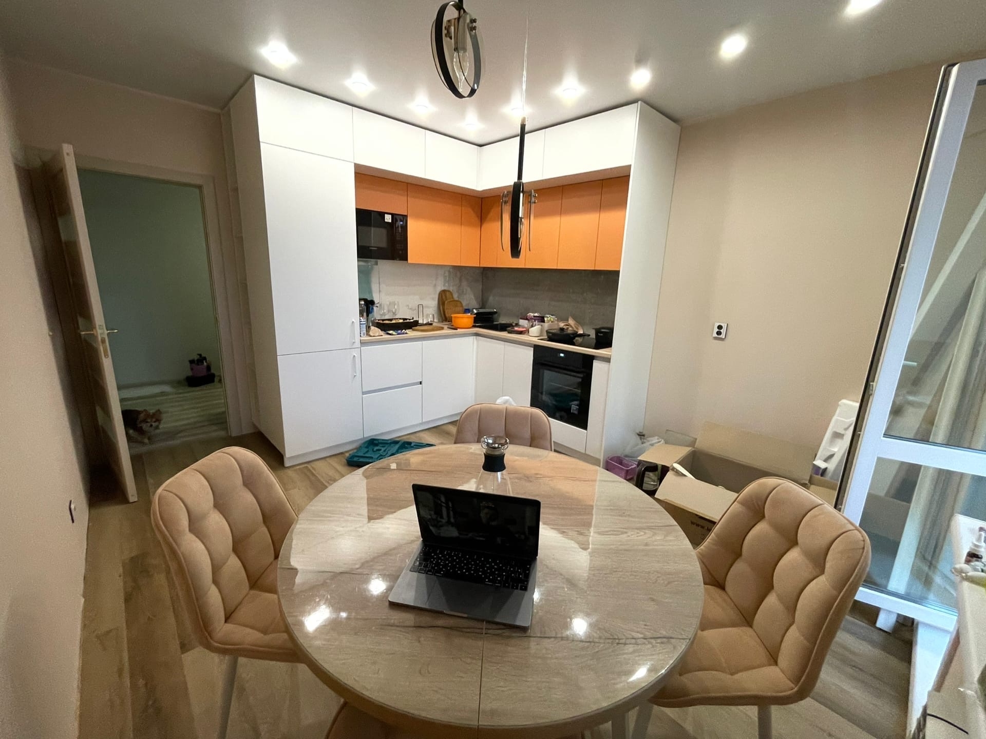 Круглый глянцевый стол располагает к беседам, светлая кухня с оранжевым акцентом навевает мысли о теплом семейном ужине, а на клетчатый пуфик в прихожей так и тянет присесть, выдохнуть после тяжелого дня. Эта квартира как будто сошла со страниц глянцевых журналов, и ее обстановку Вероника Лежнина полностью продумала сама. Собственное жилье – первый проект девушки в качестве дизайнера интерьера. Всю «взрослую» жизнь Вероника отдала работе с текстами. Пока, приобретя квартиру и начав делать ремонт, Вероника поделилась своим видением планировки с соседями.