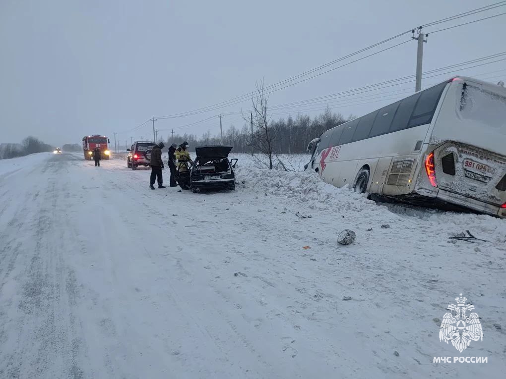 «По предварительным данным водитель легкового автомобиля выехала на полосу встречного движения и допустила столкновение с автобусом», – говорится в сообщении.