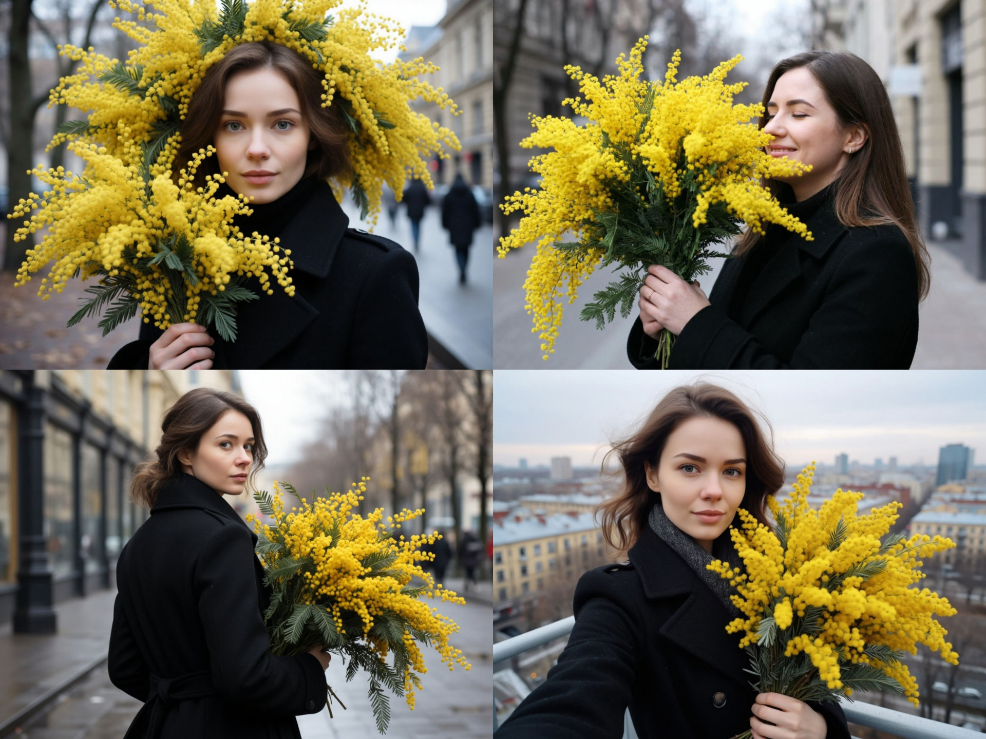 - Например, если в наличии желтые тюльпаны, то и модели стоит выбрать желтый наряд, но при этом позаботиться о светлом фоне, чтобы ничего не сливалось. Кстати, этот цвет актуален на 8-е марта, ведь один из символов этого праздника – мимоза.