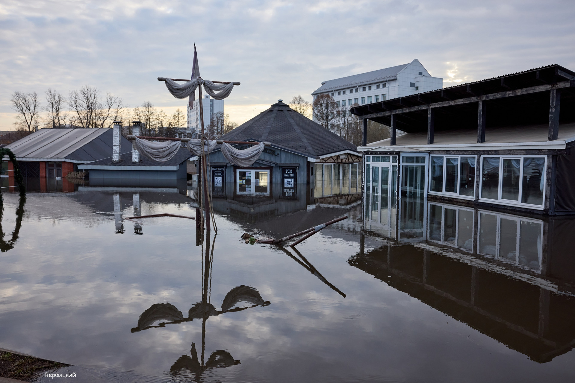 Далее многострадальное, вечно затапливаемое кафе на набережной. Страшно, но красиво!