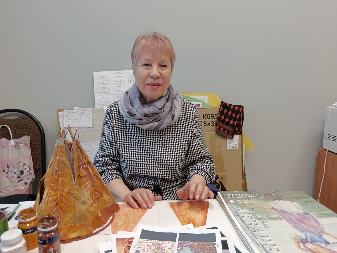 На столе разложены распечатки: костюмы вождей, головные уборы, росписи на глиняных изделиях. Некоторые рисунки крошечные, их пришлось увеличивать. Эти узоры потом появятся на вигваме.