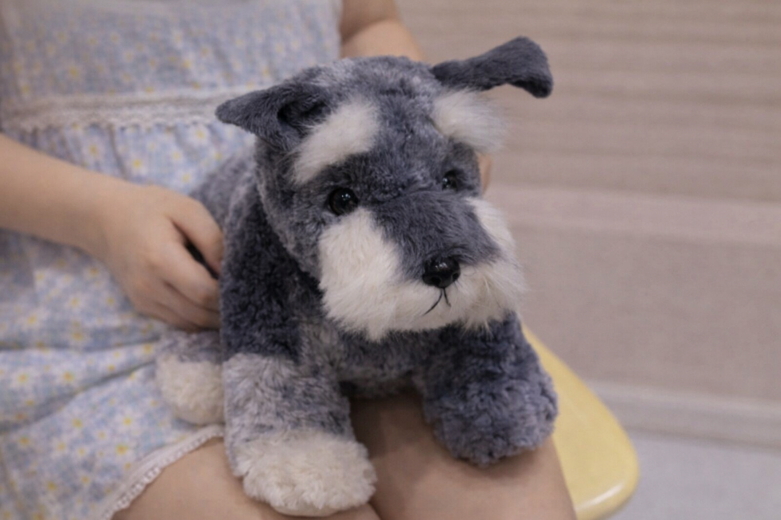 Верный цвергшнауцер не отходит от своей хозяйки ни на шаг. Ну и что, что пёс - плюшевый, зато для его владелицы - девятилетней Насти, - он самый настоящий друг.