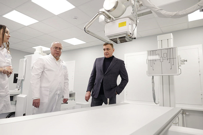 Губернатор осмотрел кабинеты флюорографии, рентгенографии, участкового врача-терапевта и хирургический блок.