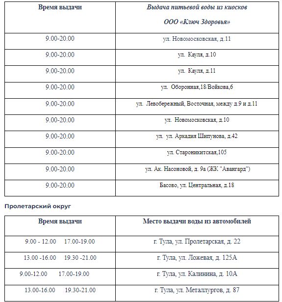 отключения воды 15 мая, связанного с ремонтно-профилактическими работами на Медвенско-Осетровском водозаборе, для туляков организуют раздачу воды в городе.