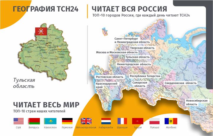 География читателей ТСН24 не ограничивается тульским регионом. Нас читает не только вся Россия, но и весь мир.