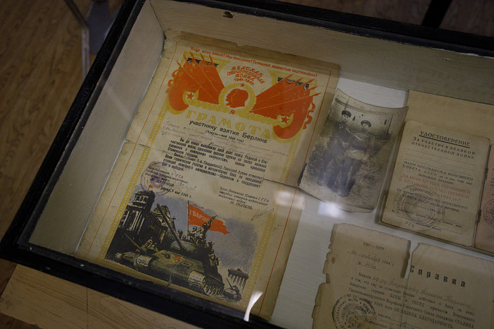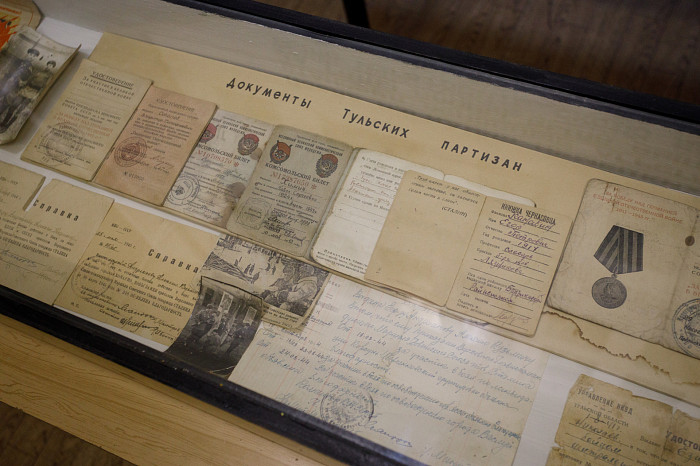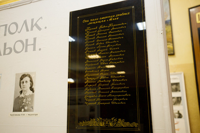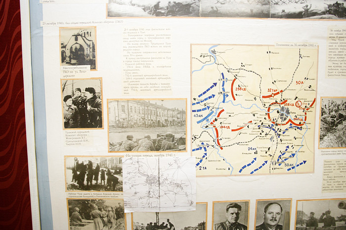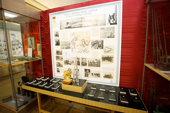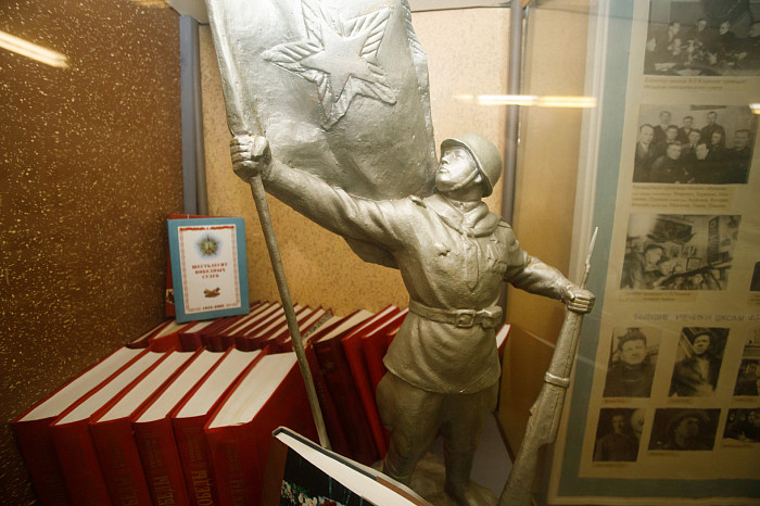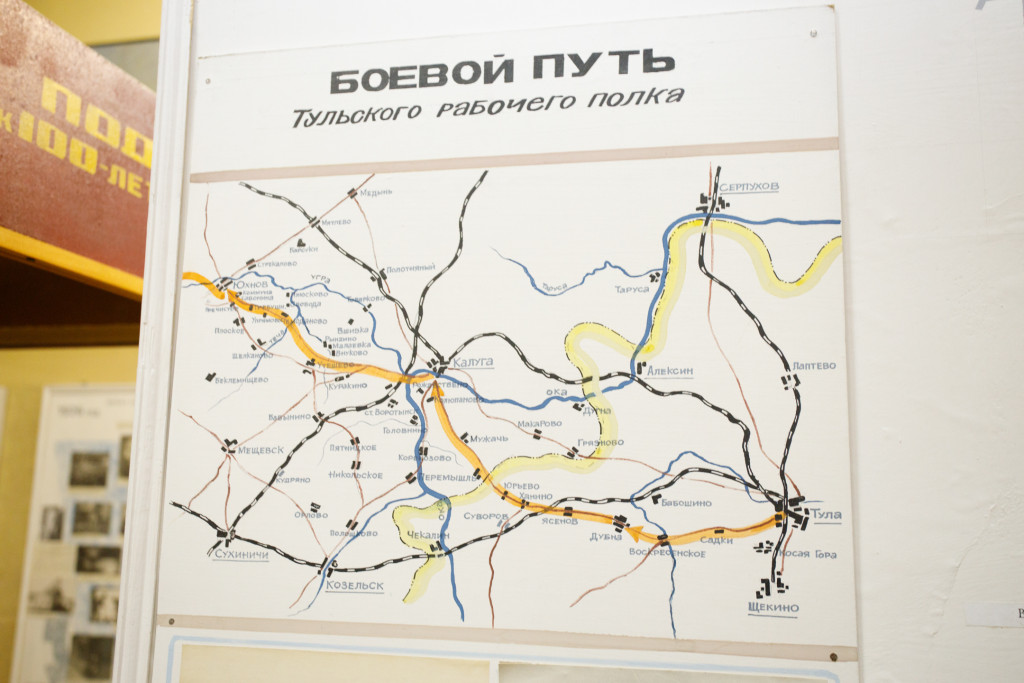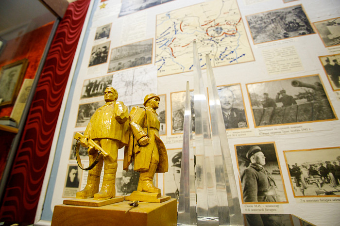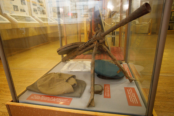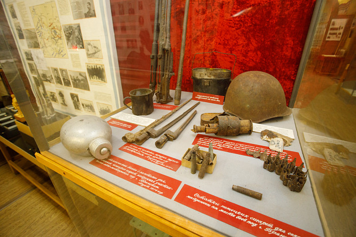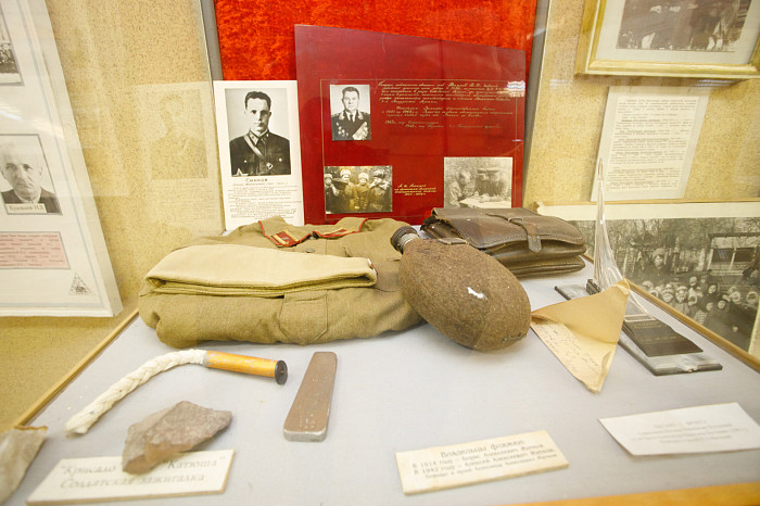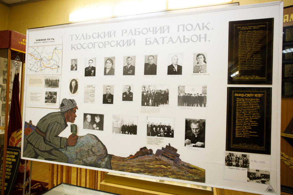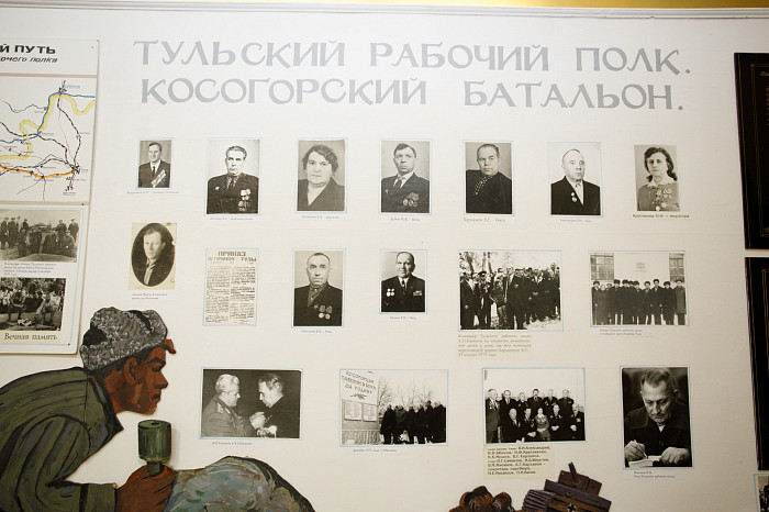 Отдельный уголок полностью посвящен героям войны – здесь можно найти имена павших солдат, маршрут передвижения Косогорского батальона Тульского рабочего полка, письма с фронта, ордена и медали.