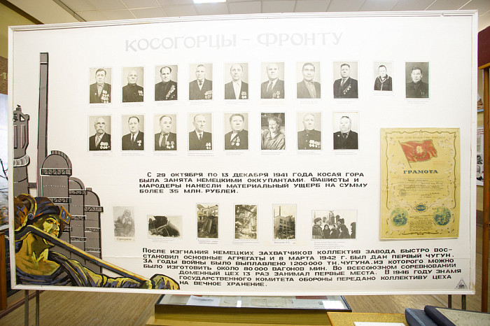 История Косогорского металлургического завода здесь раскрыта в полной мере – как предприятие основывалось (в том числе, представлены все документы), с какими трудностями столкнулось в годы Великой Отечественной войны, как в течение почти 35 лет проходило полное восстановление работы завода, как создавались три доменные печи, кто руководил «КМЗ» в течение столетия.