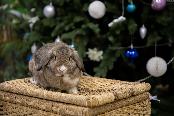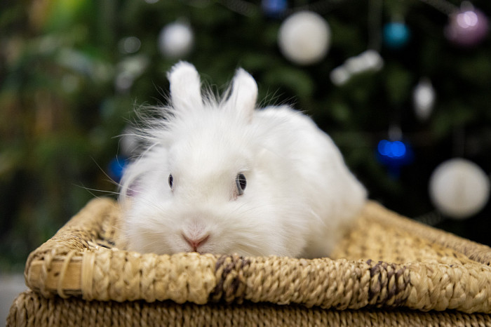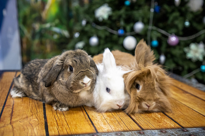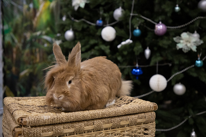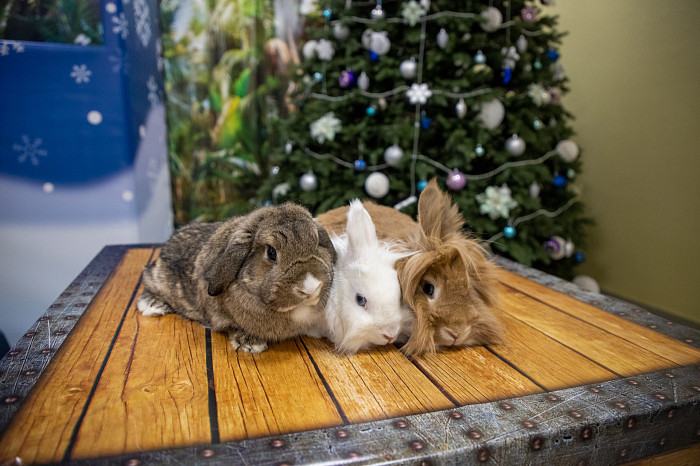 В Тульском экзотариуме можно увидеть разных кроликов – белых, рыжих, серых, коричневых, пятнистых, с челочкой. Пушистики примостились возле новогодней ели и греют друг друга своим теплом.