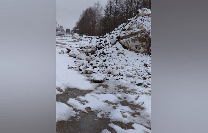 Выяснилось, что снежные массы от зимней уборки дорог складируют не на специально оборудованный полигон, а на участок местности рядом с трассой «Тула – Щекино» перед мостом на реку Воронку.