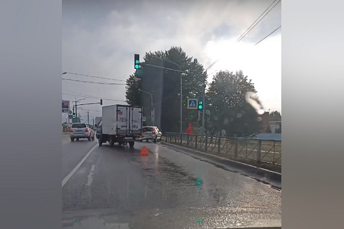На Одоевском шоссе в Туле из-за ДТП фургона с Lada Kalina собралась пробка