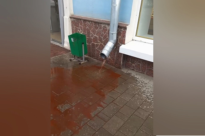Очевидцы рассказали об этом в социальных сетях. Красная вода стекает прямо на тротуар.