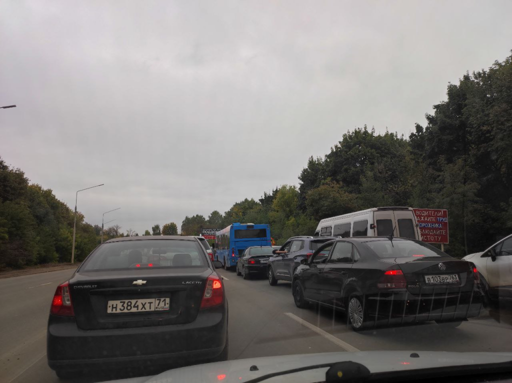 В Туле Новомосковское шоссе встало в сильной пробке, сообщили Тульской службе новостей очевидцы.
