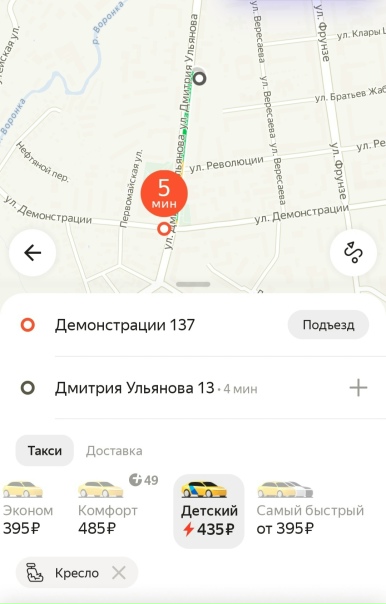 Подписчикам «Тула Жесть» при таком же коротком маршруте на тарифе «Детский» агрегатор предложил заплатить за поездку 435 рублей.
