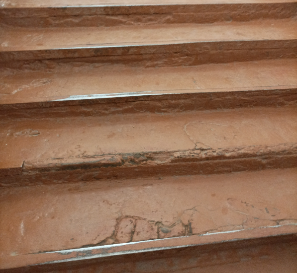 Как отметили очевидцы, состояние школы находится в плачевном состоянии. Одна из учениц прислала фотографии с большим участком отвалившейся штукатурки, который по виду издали напоминает дырку в полотке, а также практически обнаженными перекрытиями, разбитыми ступеньками и огромными трещинами на стенах.