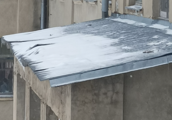 Снаружи здания обваливается фасадная штукатурка и местами погнулась кровля, что может быть чревато протеканиями при непогоде. Кстати, следы протекания в школе также имеются.