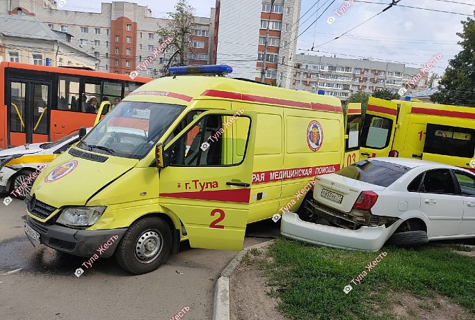 В Туле на улице Октябрьской произошло тройное ДТП с участием скорой помощи
